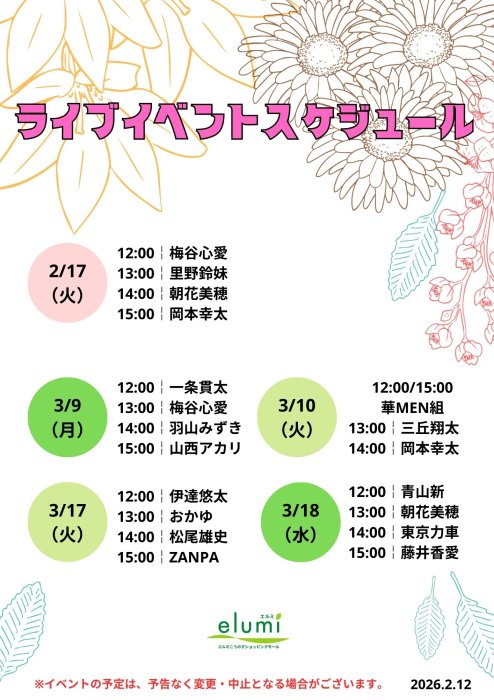 イベントの予定は、予告なく変更・中止となる場合がございます。