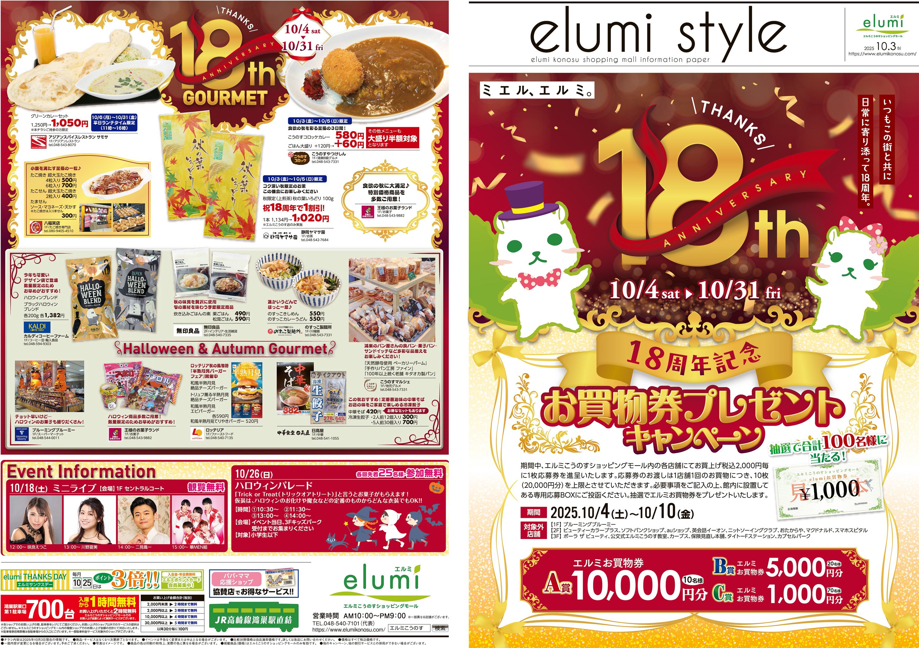 年間7回(2月・3月・5月・7月・9月・11月・12月)セントラルコート全体を使用して鴻巣物産展を開催しています。※チラシ写真参照→鴻巣-東北友情物産市(3月と11月)