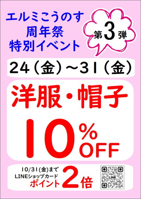 第3弾は 洋服・帽子・バッグがオトクに!!!